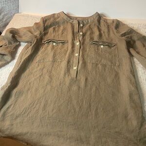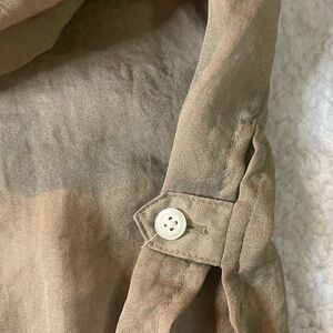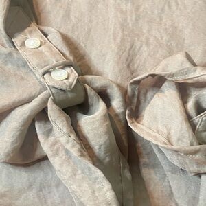 Ann Taylor LOFT, Size Small Sheer Linen Button-up, Tab Sleeves with Pockets Top
