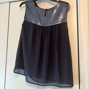 Ann Taylor LOFT Sleeveless Blouse with Sequins - Lined - Dark Blue - Medium