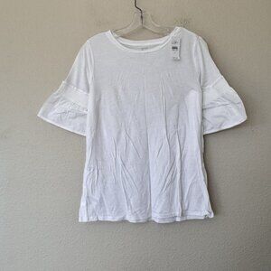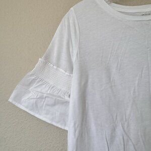 Ann Taylor LOFT Smocked Sleeve Top Size Small White Color NWT Short Sleeve
