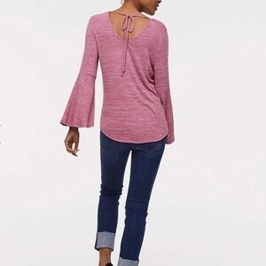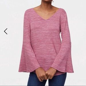 NWT!! Ann Taylor LOFT Spacedye Bell Sleeve Top in the color Black marl. Stretchy knit material. Also available in the Berry color shown!