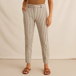 Ann Taylor LOFT Straight Leg Linen Pants Beige Striped, Size 6 Lightweight