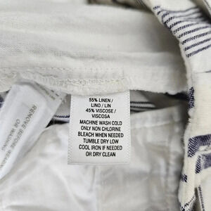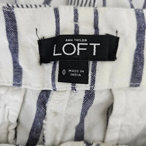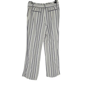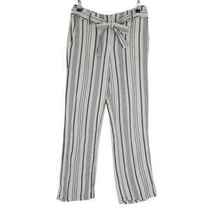 Ann Taylor LOFT Straight Leg Pants Linen White Stripe Mid Rise Tie Belt