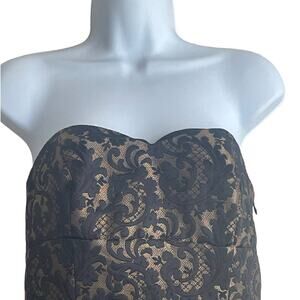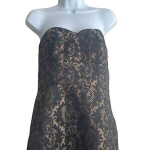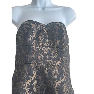 Ann Taylor LOFT Strapless Black Gold Brocade Mini Dress 4 Formal Whimsy Fairy