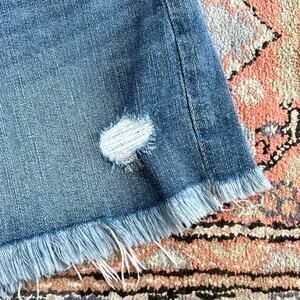 Size 30/10 Ann Taylor LOFT Shorts. Stretch denim fabric with intentional distressing. Raw, frayed hem. Zipper fly. Great conditon!