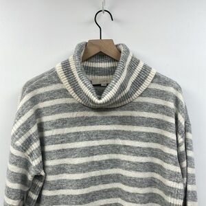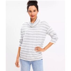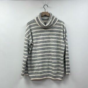 Ann Taylor LOFT Stripe Knit Turtleneck Pullover Tunic Relaxed Sweater Grey Large
