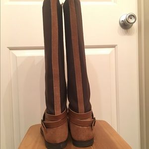 Used. Great condition, will have signs of wear. Pull on. Stretch fabric on the back. Tan Suede. Small heel. Buckle detail. Perfect for fall. This weekend only SALE PRICE IS FIRM