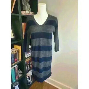 Ann Taylor LOFT Sweater Dress Black and Gray Striped. Women's Size Extra Small (XS). Very soft flattering fabric made of 50% Merino Wool and 50% Acrylic. Perfect for casual everyday wear, dressed up for a night out, or back to school!