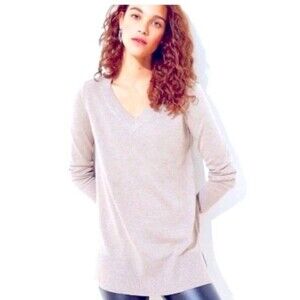 Ann Taylor LOFT Sweater Med Luxe Knit V-Neck Tunic Sweater Gray Marled