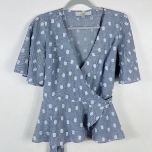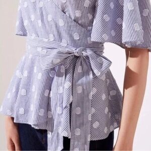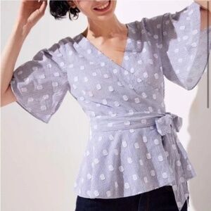Ann Taylor LOFT Swiss Polka Dot Flutter Sleeve Wrap Blouse