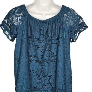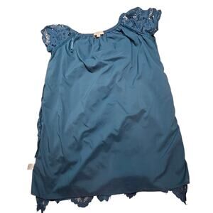 This is a beautiful, dark teal blue floral lace dress from Ann Taylor LOFT in a Women's XS. The dress is in LIKE NEW condition. The neckline is elastic and the dress can be worn off-the-shoulder or on. Excluding the lacy sleeves, the dress is fully lined. Retail $98.