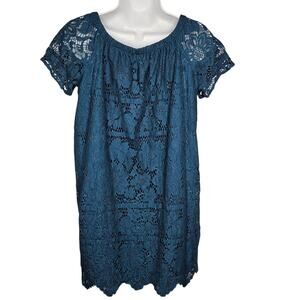Ann Taylor LOFT Teal Blue Floral Lace Off-the-Shoulder Shift Dress Size XS