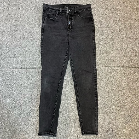 Ann Taylor LOFT The Skinny Jewel Button Fly Jeans Womens Size 8 Black Denim