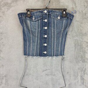 Ann Taylor LOFT The Softened Shirt Tunic Womens M Pastel Aqua Metallic Striped