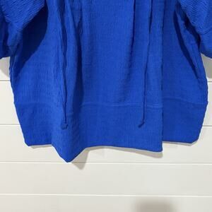 Ann Taylor LOFT | Top Blue Short Puff Sleeve V Neck Textured- Size Small