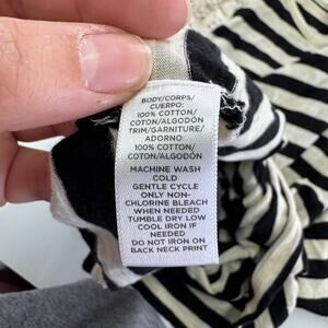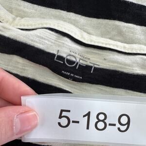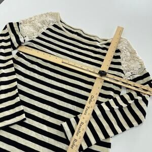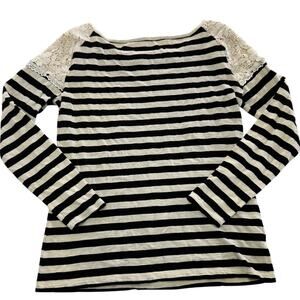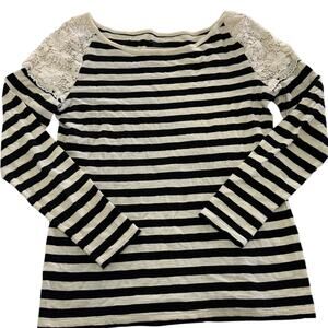 Ann Taylor LOFT Top Womens Medium Cream Black Striped Lace Shoulder Blouse