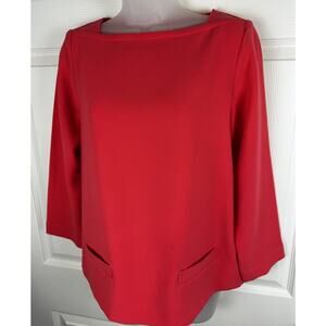 This Ann Taylor LOFT tunic is a must-have for any fashion-forward woman. The dark coral color is perfect for adding a pop of color to any outfit, while the 3/4 bell sleeves and boat neckline give it a chic and sophisticated look. The tunic features a pullover closure and is made from a comfortable blend of polyester and spandex that is machine washable for easy care.