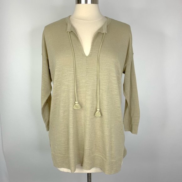 Ann Taylor LOFT Tasseled Cotton Tunic Sweater Top