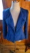 Open front tweed contemporary blazer. Turquoise and navy blue. Fringe trim at opening. Can be worn overlapping or open with collar folded. Pictured both ways. Size 2. Good pre-owned condition.
