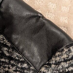 This Ann Taylor tweed jacket with black faux leather shoulder and pocket trim sat in the closet for too long, so some of the faux leather flaked on the shoulders and neck. (Priced accordingly!)