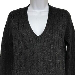 Ann Taylor LOFT V-Neck Sweater Sparkle Knit Pullover Long Sleeve Black Women's S