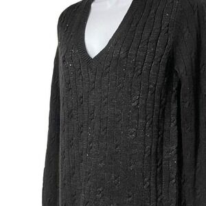 Keywords: Ann Taylor LOFT, V-neck sweater, sparkle sweater, knit sweater, black sweater, long sleeve sweater, pullover sweater, womens sweater, size S, casual sweater, dressy sweater, sparkle knit, LOFT sweater