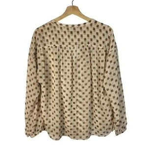 Ann Taylor LOFT White & Brown Star Anise Floral Long Sleeve Blouse S