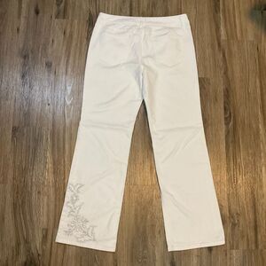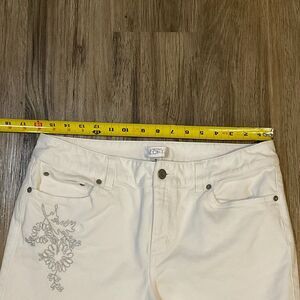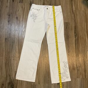 Ann Taylor LOFT White Denim Jeans Embroidery Floral Stretch Straight Leg Size 10