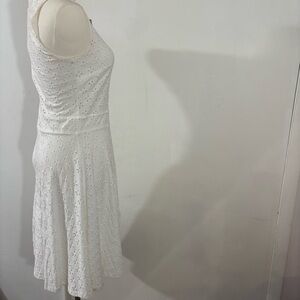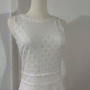 Ann Taylor LOFT White Eyelet A-Line Sleeveless Dress Sz 0 Bridal Floral Summer