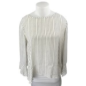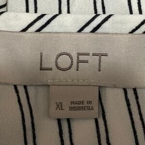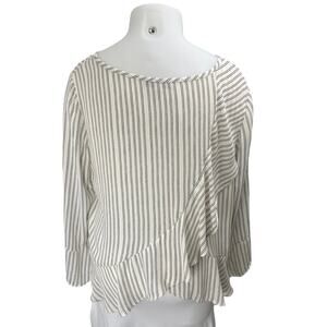 Ann Taylor LOFT White Striped Asymmetric Ruffle Long Sleeve Blouse Top Size XL