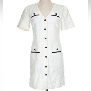 Ann Taylor LOFT White Tweed V-Neck Pocket Sheath Dress Bloggers Favorite Size 00