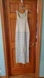 Cotton and polyester Loft dress. Tank top in beige with drawstring waist, grey stripes on skirt part. Super soft! Approximately 54.5in long, 17in bust