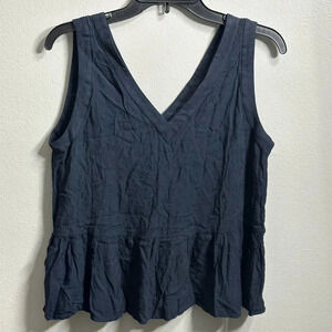 Ann Taylor LOFT Women Navy Blue V-neck Blouse Top Size Small.
