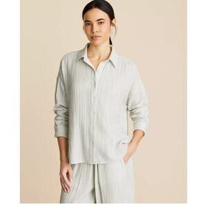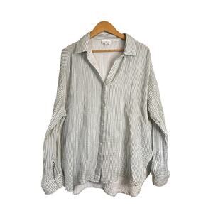 Ann Taylor LOFT Women Striped Triple Cloth Button Front Shirt Size XL Gray Green