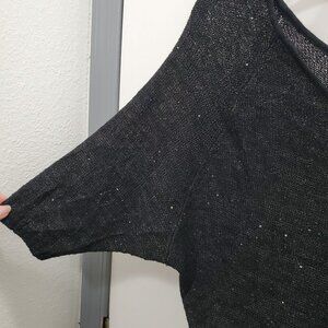Ann Taylor LOFT Women's Black Mesh Knit Sequin Dolman Sleeve Pullover Sweater XS