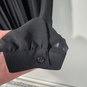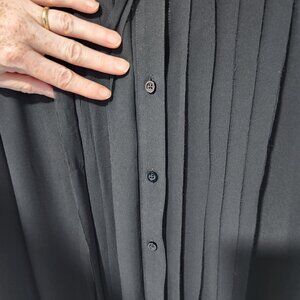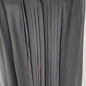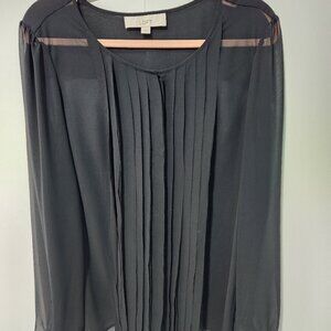 Ann Taylor LOFT Women's Black Sheer Button Down Long Sleeve Button Blouse Top. Pleated front with a panel to cover the buttons on the front to give the blouse an elegant look. Single button closure on each cuff.  This blouse is in excellent condition.