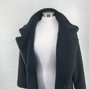 Ann Taylor LOFT Womens Black Wool Moto Zip Front Winter Coat Size Small