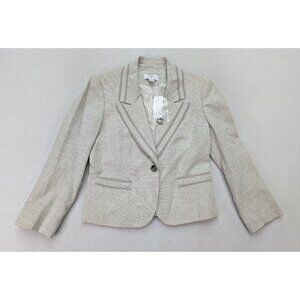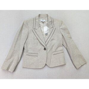Ann Taylor LOFT Women's Blazer Jacket Size 0 Linen Blend Beige Gray Silver NEW