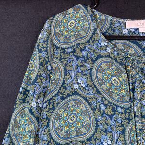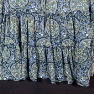 Ann Taylor LOFT Womens Blouse Blue Paisley Frill Doll Chiffon Bell Sleeve Small