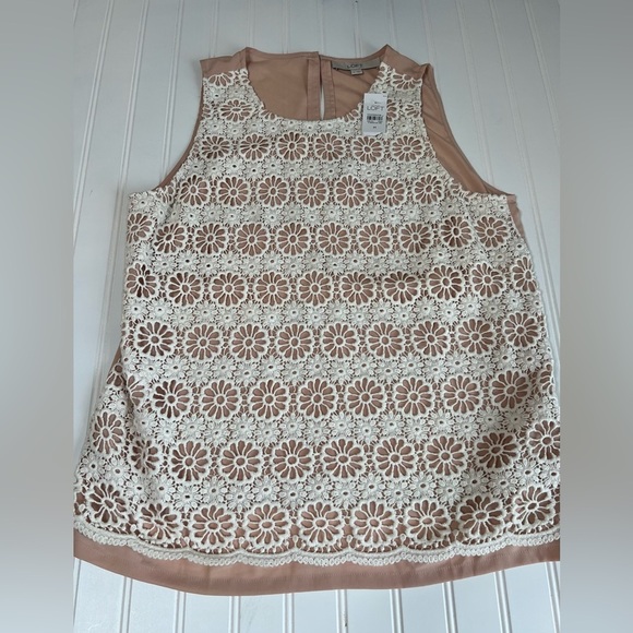 Ann Taylor LOFT Womens Blouse Lace Overlay Sleeveless Top Medium NEW