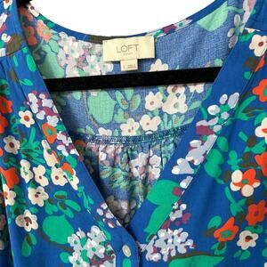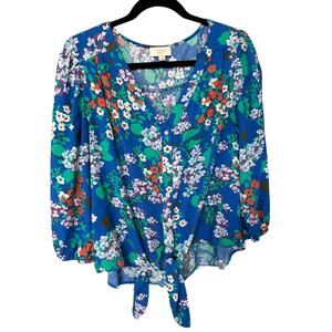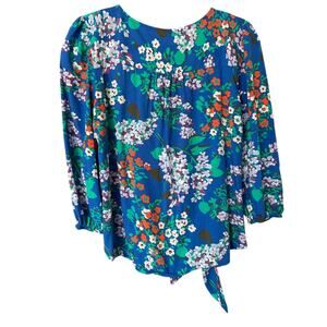 Ann Taylor LOFT Women's Blue Multicolor Floral Tie Top Size Large