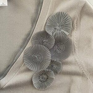 Ann Taylor LOFT Womens Cardigan S Gray Pima Cotton Floral Vneck Beaded Sweater