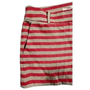 Ann Taylor LOFT Women's Coral/Tan Striped Linen Blend "The Rivera Short" SIZE-8