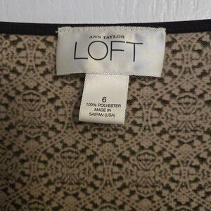 Chic and versatile Ann Taylor LOFT dress in a timeless black and beige geometric print. Features a flattering surplice V-neckline, short sleeves, and empire waist for a feminine silhouette. Made of soft, lightweight 100% polyester that’s comfortable for all-day wear. Perfect for the office, dinner dates, or casual outings.