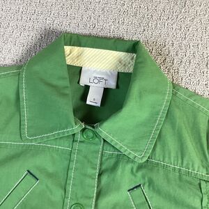 Ann Taylor LOFT Women's Green Utility Jacket Size 0 Button Front Cotton Stretch