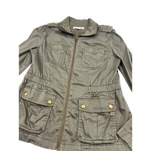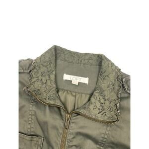 Ann Taylor LOFT Womens Green Y2K Crochet Lace Military Field Jacket Sz S