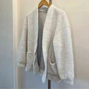 Ann Taylor LOFT Women's Ivory Sherpa Coatigan Size L Open Front Casual