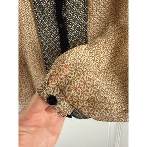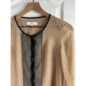 Ann Taylor LOFT Women's Long Sleeve Button Front Blouse Tan Black Print Size XS