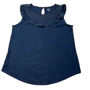 Ann Taylor LOFT Women's Petite Navy Blue Sleeveless Lace Blouse