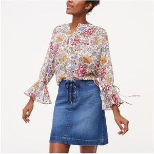 Ann Taylor LOFT Women's Size 14 Lace Up Front Zip Back Short Denim Skirt