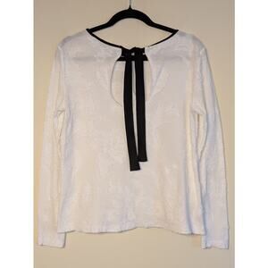 Ann Taylor LOFT Women's Size Small Clip Dot Bow Back Top Black White Textured